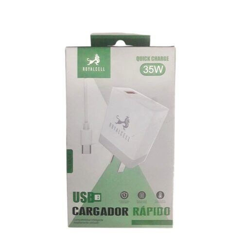 CARGADOR 220V. ROYALCELL TIPO C 3.8 AMP. RC9003800A 35W (1 USB+CABLE)